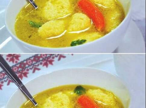 – Între timp, se bat ouăle cu ulei și cu sare, apoi se adaugă grișul, până când obțineți consistența unei smântâni groase. Cu o lingură încălzită, se ia din compoziție și se adaugă găluștele în supă
