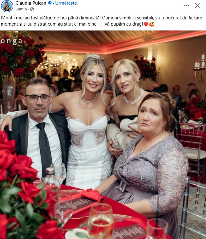 Pentru a clarifica situația, Claudia Puican a publicat pe contul său de Facebook o fotografie în care apare alături de părinți și a transmis un mesaj scurt, dar plin de înțeles: