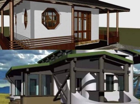 Proiectul a fost conceput de Bogdan Mureșan, un talentat arhitect din Brașov, iar baza construcției este reprezentată de baloții de paie. Fundația este realizată din pietre de râu, pe care se toarnă o placă de beton solidă. În această placă sunt încastrate suporturile destinate baloților de paie, iar deasupra întregii structuri este montat un acoperiș din lemn.