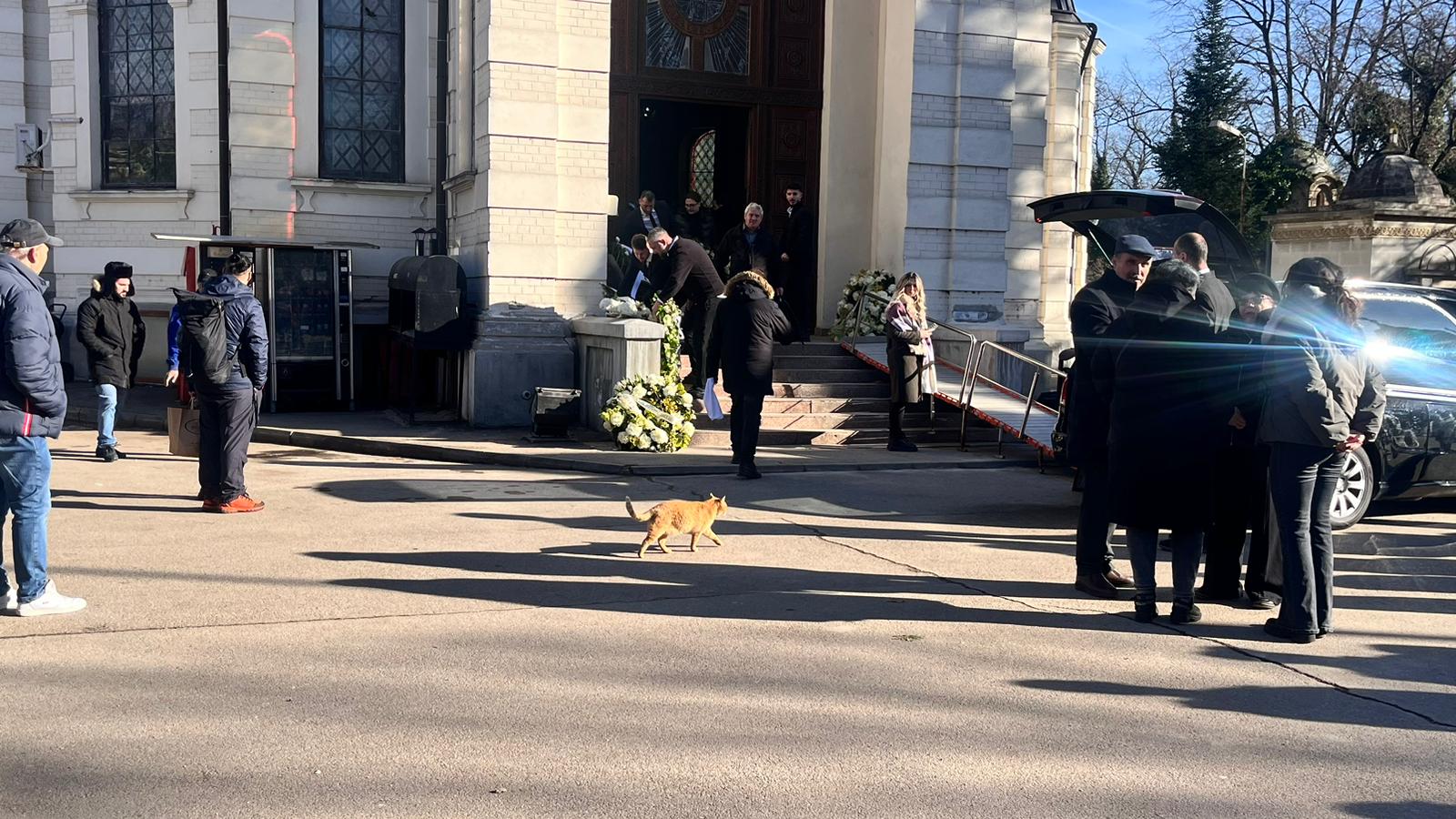 În mijlocul atmosferei apăsătoare, un detaliu neașteptat a atras atenția celor prezenți. Printre oameni și-a făcut apariția o pisică, care a înaintat timid printre picioarele participanților, apropiindu-se de zona unde se afla dricul. Momentul a fost surprinzător și a stârnit reacții diverse: unii au zâmbit involuntar, alții au privit scena cu emoție și uimire.